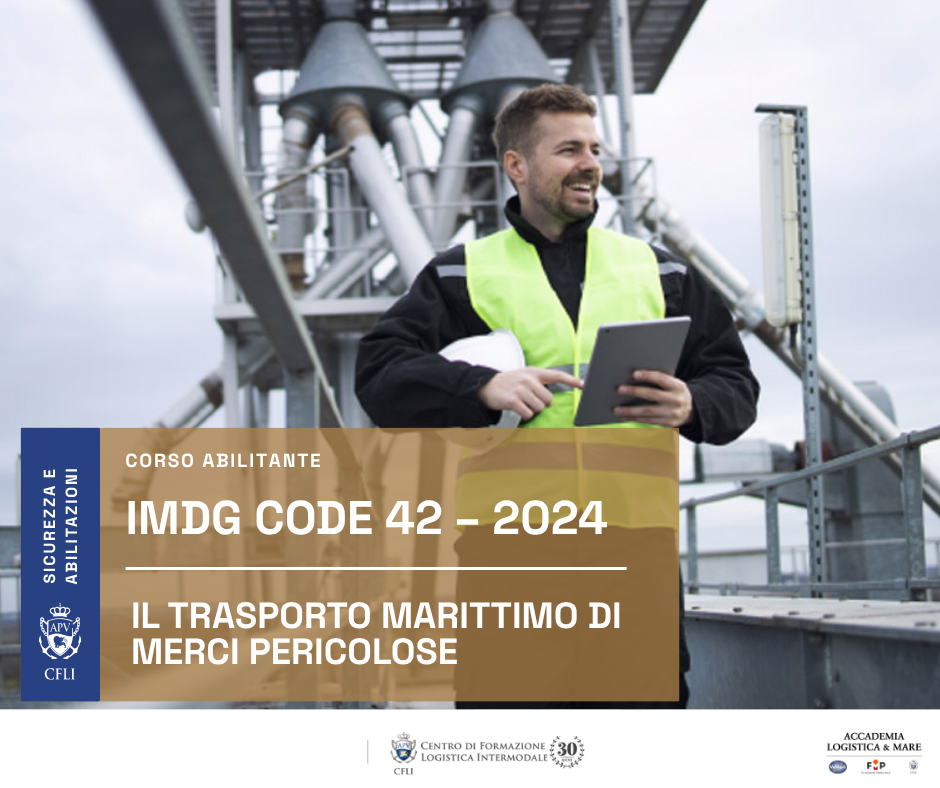 Il corso, ai sensi del capitolo 1.3 del Codice IMDG, esamina ed approfondisce le disposizioni generali e specifiche applicabili al trasporto marittimo ed intermodale di merci pericolose, anche sulla base delle novità introdotte dall’emendamento 42-2024 del Codice IMDG. Approfondisce in particolare le tematiche relative alle attività compiute dagli agenti raccomandatari marittimi.